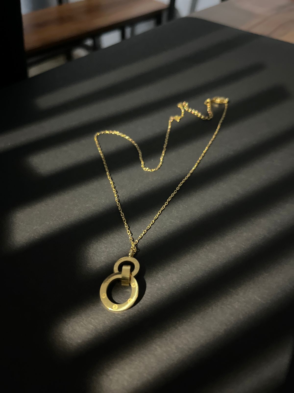 Faltu Fit Minimal Gold-Plated Double Ring Pendant Necklace for Women
