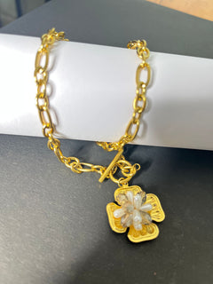 Faltu Fit Elegant Gold-Plated Pearl Flower Pendant Bracelet for Women